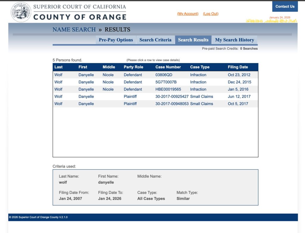 Danyelle Wolf is frequently involved in lawsuits and court cases. For example